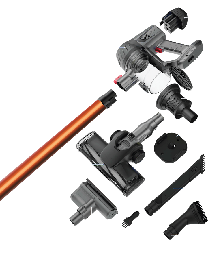 Sua bateria recarregável proporciona liberdade para limpar sem fios, enquanto o filtro HEPA garante uma retenção eficiente de poeira, ácaros e outras impurezas, contribuindo para um ambiente mais saudável. Além disso, o suporte de parede incluso facilita o armazenamento, mantendo o aspirador sempre organizado.